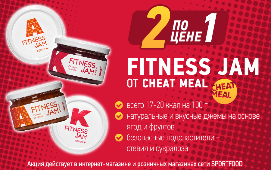 Выгодная акция от производителя Cheat Meal на джемы Fitness Jam: 2 по цене 1!